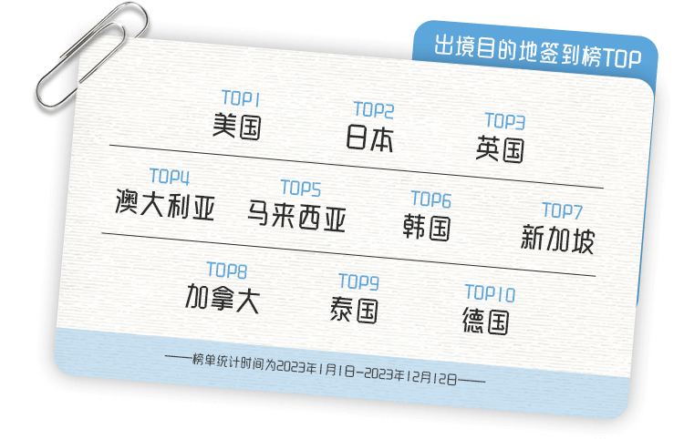 是出境目的地签到榜TOP30,
